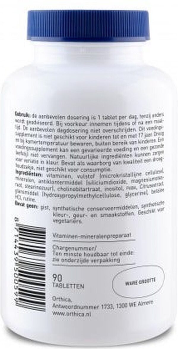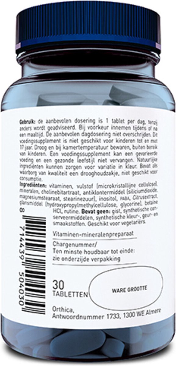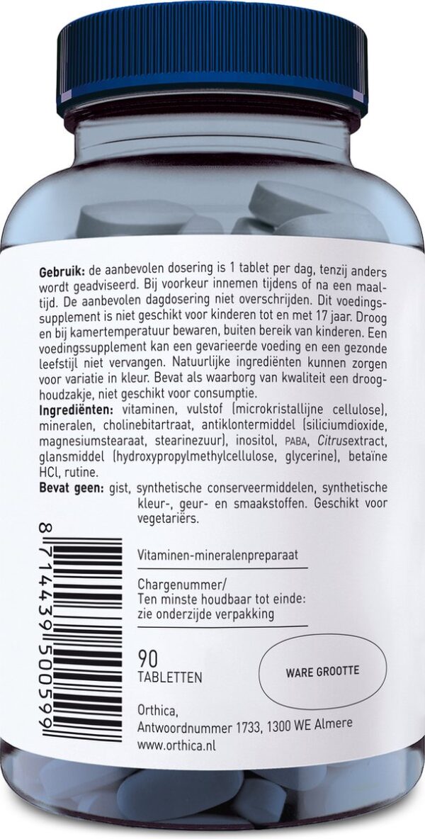 Bij vermoeidheid (foliumzuur, ijzer,B3, B5 B2, B12, B6 en C) en bij geestelijke inspanning (biotine, B3, B1, B12, B6, C, foliumzuur) of voor sporters biedt Orthica’s hoogst gedoseerde multi een goede ondersteuning. brand ORTHICA