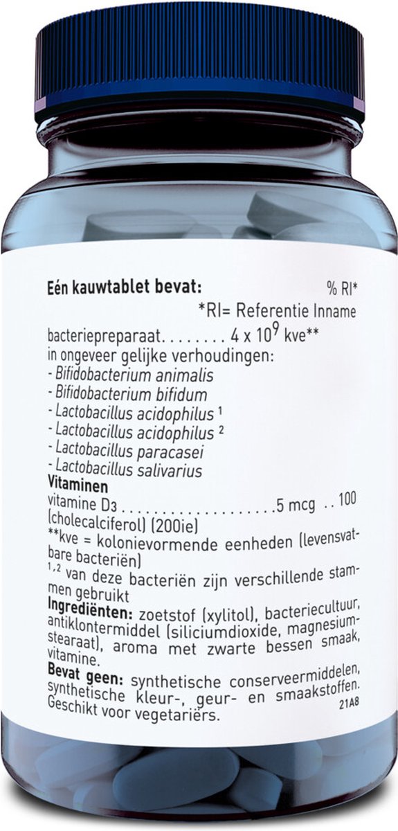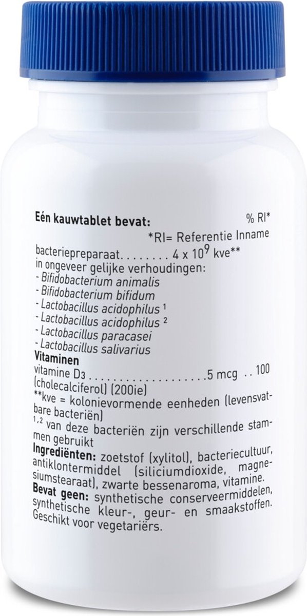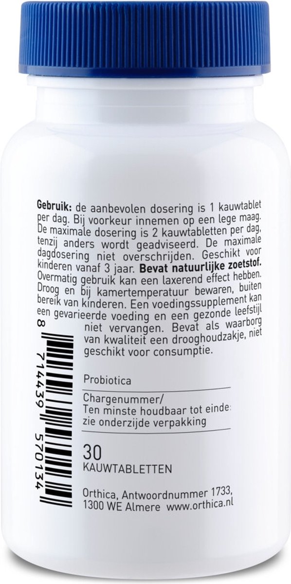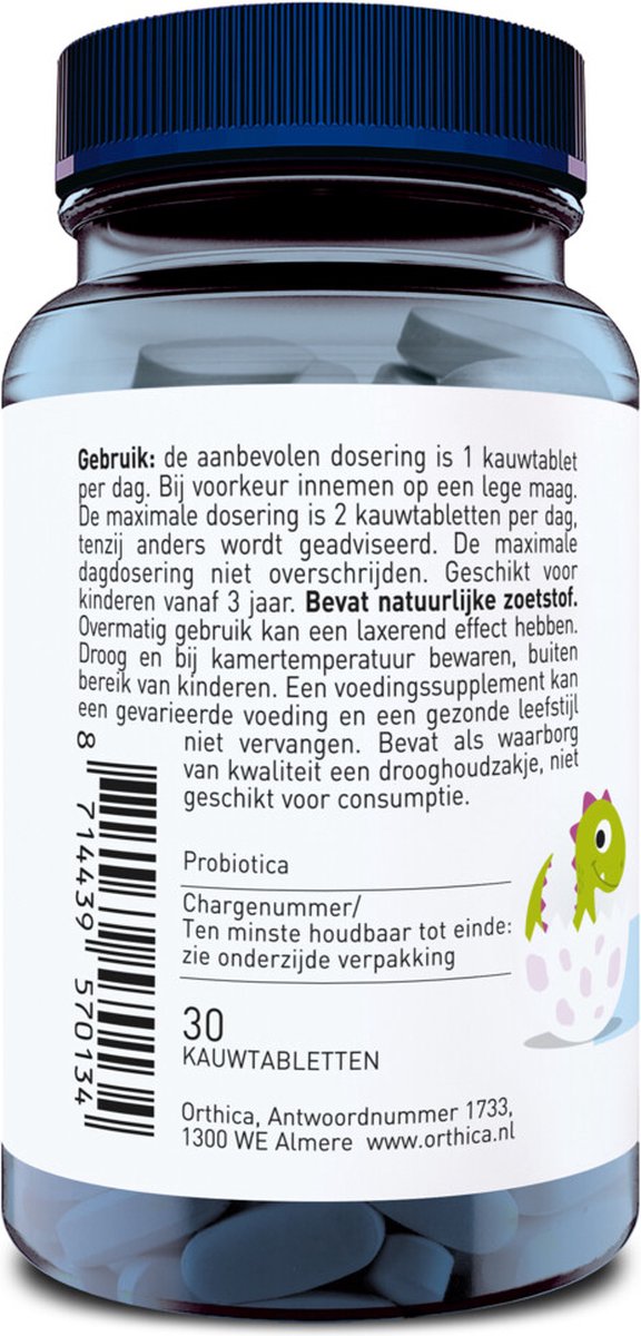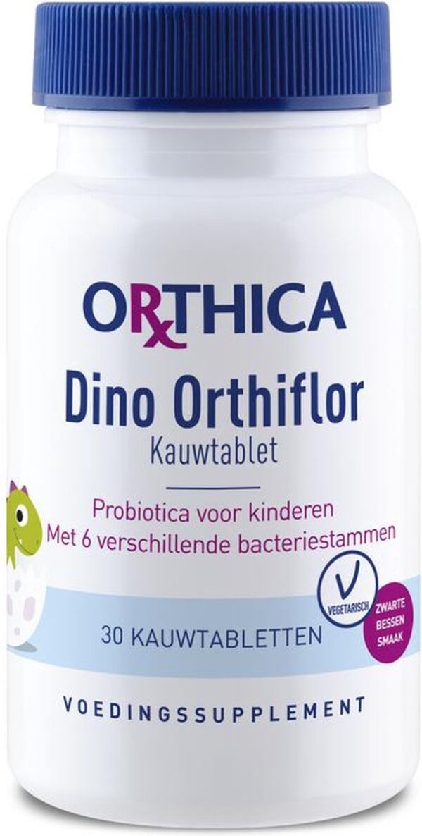 Probiotica voor kinderen met zwarte bessensmaak en 6 verschillende bacteriestammen Dino Ortiflor Kauw is een probioticum geschikt voor kinderen vanaf 3 jaar. De handige kauwtablet heeft een lekkere zwarte bessensmaak en is gezoet met natuurlijke zoetstof.
