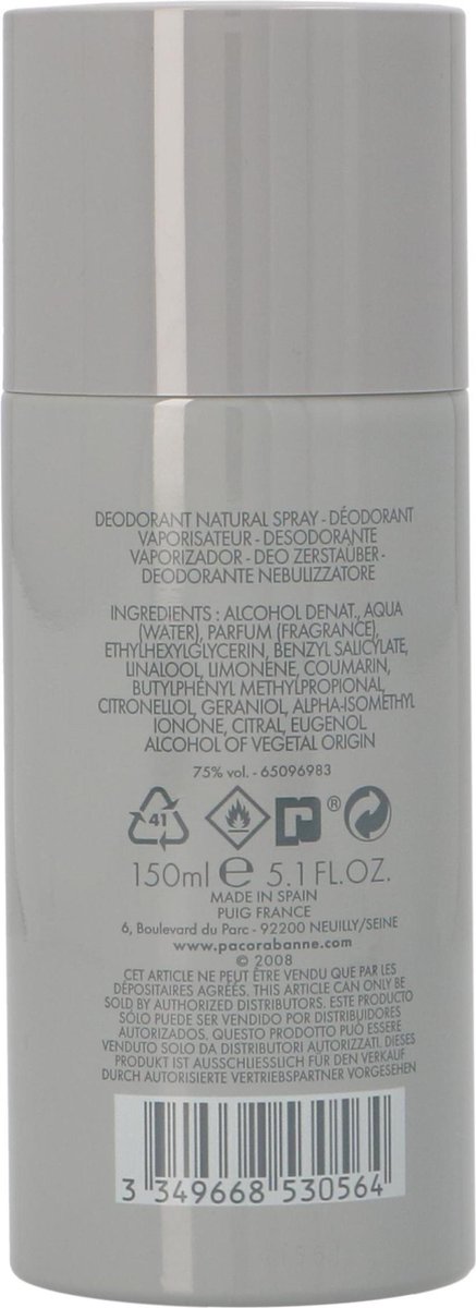 Paco Rabanne Invictus: de nieuwe fantasie van Paco Rabanne, een icoon voor mannen en een fantasie voor vrouwen. De deodorant heeft een sensuele en frisse geur voor heren, de geur van overwinning. Topnoten: marine noten, grapefruit, laurierbladerenHartnoten: gaiac hout en amberBasisnoten: labdanum brand PACO RABANNE