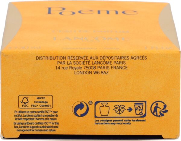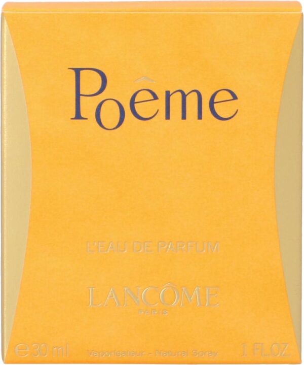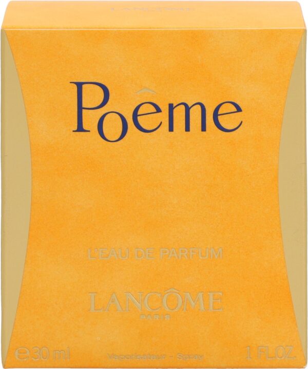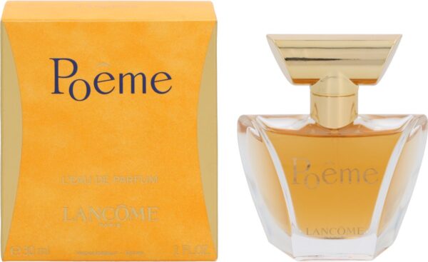Poême van Lancôme is een poëtisch parfum met een bloemig en oosters karakter. Voor de verleidelijke vrouw. Poême is een ware klassieker en werd uitgebracht in 1995.. Topnoten: Zwarte bes, Himalaya papaver, Pruim, Groene noten, Mandarijn, Narcis, Perzik, Bergamot en DoornappelHartnoten: Mimosa, Leder, Oranjebloesem, Fresia, Jasmijn, Heliotroop, Ylang-Ylang , Vanillebloem, Tuberoos en RoosBasisnoten: Tonkaboon, Amber, Muskus, Vanille, Oranjebloesem en Ceder brand POEME