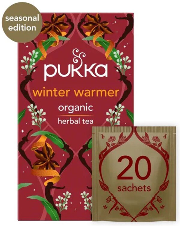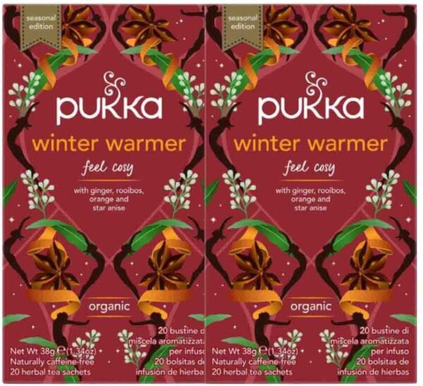 Pukka Winter Warmer Thee is een heerlijke biologische thee met gember, rooibos, sinaasappel en steranijs die perfect past bij de lange, donkere winteravonden. Deze thee heeft een warme en verkwikkende smaak en is gebaseerd op de Ayurvedische leer. Verder is de thee vrij van synthetische zoetstoffen, het is duurzaam verbouwd en de theezakjes zijn vervaardigd uit FSC-gecertificeerd ongebleekt papier.