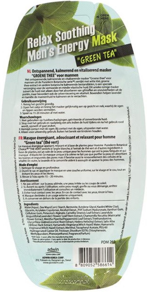 Purederm Gezichtsmasker Green Tea voor Mannen 15 ml