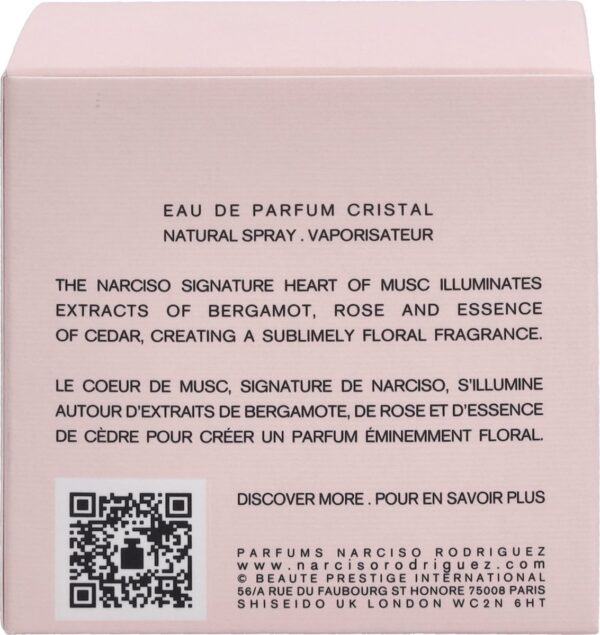 Narciso Rodriguez Narciso Cristal Eau de Parfum is een betoverende geur die de zintuigen prikkelt met zijn heldere en kristalachtige compositie. Dit parfum belichaamt de tijdloze elegantie van Narciso Rodriguez en omhult de draagster met een subtiele, maar blijvende allure. De frisse en bloemige noten maken van Narciso Cristal een unieke geurervaring, geschikt voor elke gelegenheid.