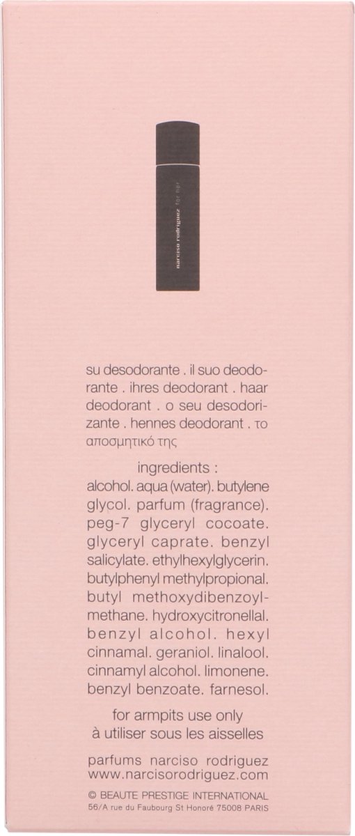 De Deodorant Spray For Her Narciso Rodriguez (100 ml) is een exclusief topproduct voor lichaamsverzorging. Als je op zoek bent naar de beste producten voor persoonlijke hygiëne, zijn onze 100 % originele Narciso Rodriguez producten precies wat je zoekt.