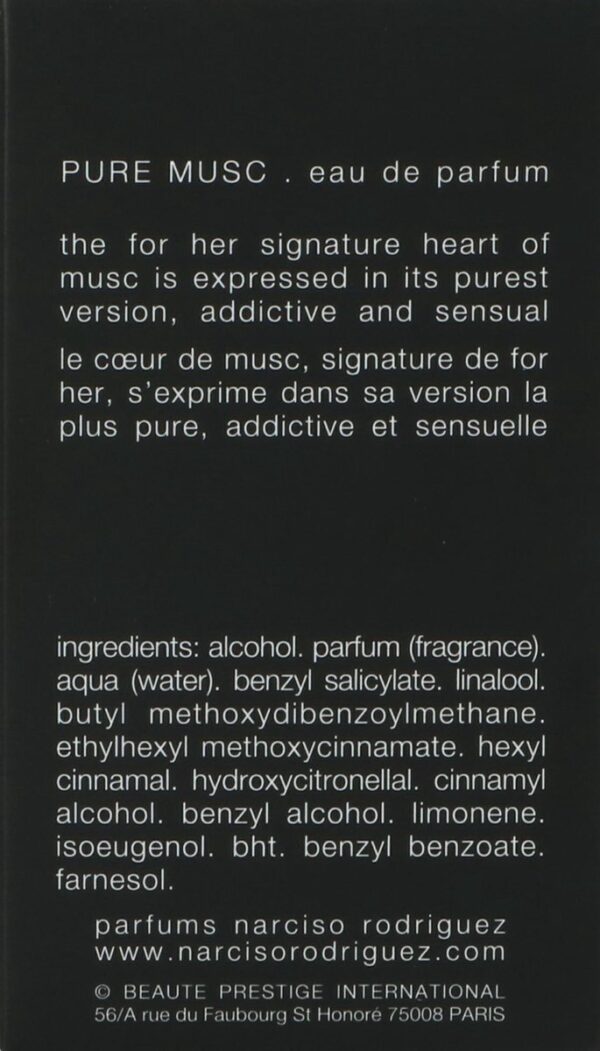 Het kenmerkende hart van musk voor Narciso Rodriguez Pure Musc for her komt tot uiting in zijn zuiverste vorm, verslavend en sensueel.