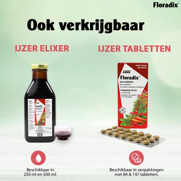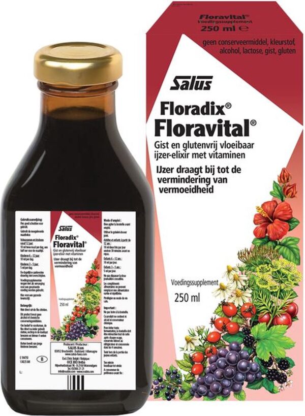 Salus Floradix IJzer-elixir – Mineralen – Bij vermoeidheid – Met ijzer en vitamine B12 – 250 ml