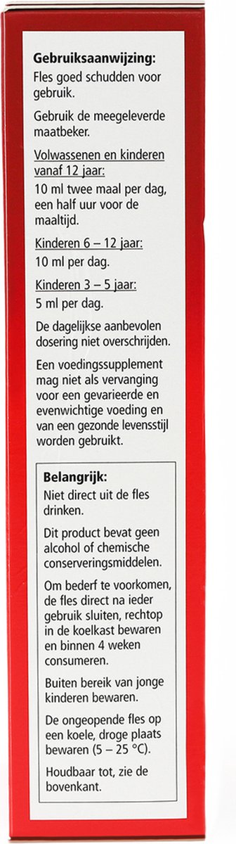 Voor volwassenen en kinderen vanaf 12 jaar: neem 2x per dag 10 ml in, een half uur voor de maaltijd. Voor kinderen van 6 tot 12 jaar: neem 1x per dag 10 ml in. Voor kinderen van 3 tot 5 jaar: neem 1x per dag 5 ml in.