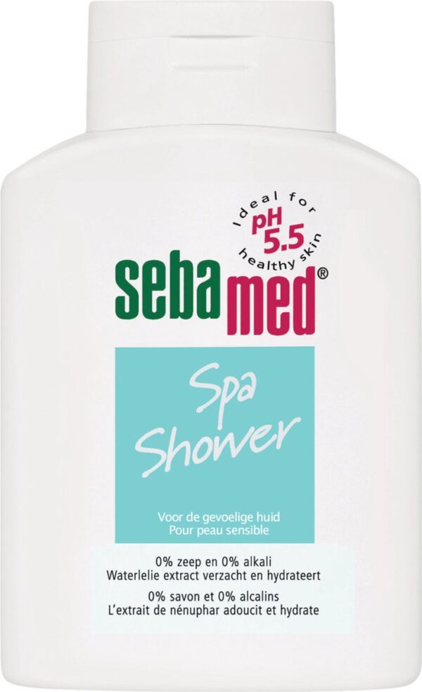 Het dagelijks wassen van je lichaam met water en zeep kan de natuurlijke beschermlaag van je huid aantasten, met als gevolg een droge en geïrriteerde huid. Voor een lekker ontspannend gevoel aan het begin of eind van de dag, neem je een heerlijke douche met de 100% zeepvrije Spa Douchegel van Sebamed. De ontspannende formule met Waterlelie-extract hydrateert de huid en houdt de vochtbalans op peil. Bovendien beschermt het de gevoelige huid tegen uitdroging. De huid voelt merkbaar gladder aan. De huidneutrale pH-waarde van 5,5 versterkt de natuurlijke beschermingslaag van de huid. Zo blijft de huid gezond en in topconditie. Ontwikkelt door en met dermatologen. Dermatologisch/klinisch getest.