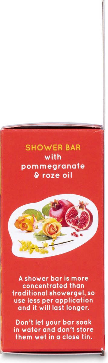 Een van de heerlijke “Solid Shower Bars” voor onder de douche. Zonder zeep, zonder plastic maar vol met natuurlijke gecertificeerde ingrediënten om je te verzorgen, te ontspannen of te verfrissen.