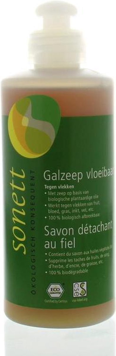 Grootmoeders vlekkenmiddel in vloeibare vorm. Effectief middel tegen vlekken van vet, fruit, gras, balpen, bloed, enz. Test eerst op een onopvallende plek of de stof kleurecht is.