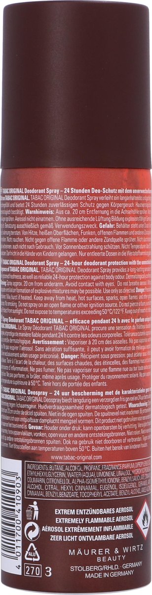 De Deodorant Spray Original Tabac (200 ml) is een exclusief topproduct voor lichaamsverzorging. Als je op zoek bent naar de beste producten voor persoonlijke hygiëne, zijn onze 100 % originele Tabac producten precies wat je zoekt. Geslacht: Mannen Vermogen: 200 ml Geschikt voor alle huidtypes Aroma: Lavendel Citroenzuur brand TABAC
