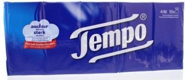 Tempo gewone zakdoekjesDeze zakdoekjes van Tempo zijn uitgerust met de Soft Comfort Formule van Tempo. De zakdoekjes zijn dus heel zacht maar toch sterk.
