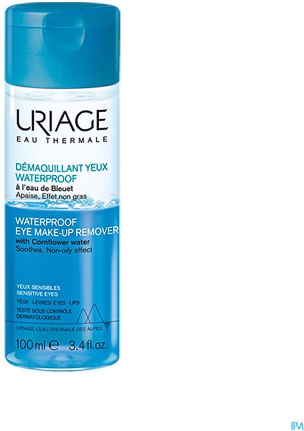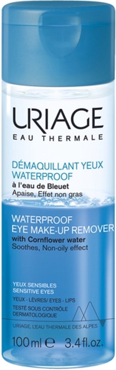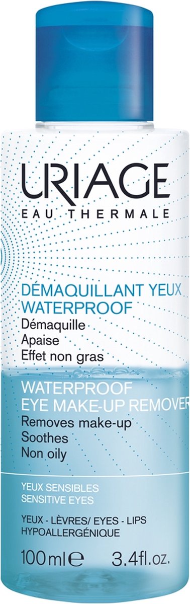 Uriage Hygiëne Demaquillant Yeux Waterproof – Waterproof Eye Make-up Remover. Deze waterproof remover is ontwikkeld voor ogen en lippen. De meest hardnekkige make-up wordt verwijderd in een handomdraai. De remover is ultra zacht en voelt prettig aan, ook geschikt voor de gevoelige ogen. Gebruik: Goed schudden om de twee fasen te mengen. Breng een kleine hoeveelheid aan op een wattenschijfje en houdt enkele seconden op het gesloten oog. De make up lost op, waardoor je het er moeiteloos afhaalt.