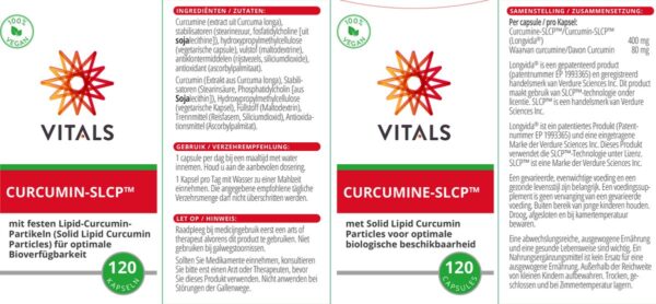 De grootste uitdaging bij het ontwikkelen van curcuminepreparaten met een optimale werkzaamheid, is het overwinnen van de problemen bij de opneembaarheid en biologische beschikbaarheid ervan. Curcumine in een ‘onbewerkte’ vorm wordt na orale inname in de darm en in de lever immers snel omgezet in onwerkzame metabolieten, zoals curcumine-glucuronide, die door het lichaam weer snel worden uitgescheiden. Verdure Sciences, de producent van Curcumine-SLCP™ van Vitals, is er na jarenlang onderzoek en samenwerking met de Universiteit van Californië (UCLA) in geslaagd om deze problemen op te lossen. Door middel van hun gepatenteerde technologie, hebben zij de opneembaarheid van curcumine met 65x weten te vergroten en de biologische beschikbaarheid met maar liefst 285x (ten opzichte van standaard curcumine-preparaten bestaande uit 95% curcumine). Deze doorbraak is bereikt na het testen van vele verschillende formuleringen op hun biologische beschikbaarheid bij mensen. De meest optimale resultaten werden verkregen bij een formulering die in feite geïnspireerd is op de Indiase keuken, waar bij de bereiding van currypasta’s kurkuma wordt gemengd met olieachtige bestanddelen. In hun curcumine-product met de merknaam Longvida® wordt gebruikgemaakt van zogenoemde Solid Lipid Curcumin Particles, waarbij de curcumine is verpakt in een vetachtig deeltje dat bestaat uit drie langeketenvetten die ook in voeding voorkomen, namelijk fosfatidylcholine, stearinezuur en ascorbylpalmitaat.