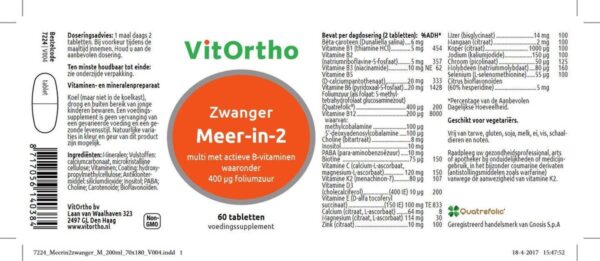 Biologisch actieve vormen van vitamine B2, B6, foliumzuur en B12. Organische mineraalverbindingen. Vitamine K2 als menachinon 7 (VitaMK-7). Natuurlijke vitamine E Voordelige grootverpakking. Bevat 400 mcg foliumzuur als Quatrefolic® (goed opneembare vorm) per dagdosering. Aangepaste dosering vitaminen. Met ijzer in goed opneembare en verdraagbare vorm. Ondersteunt het immuunsysteem. Rijk aan calcium, magnesium en vitamine B12.
