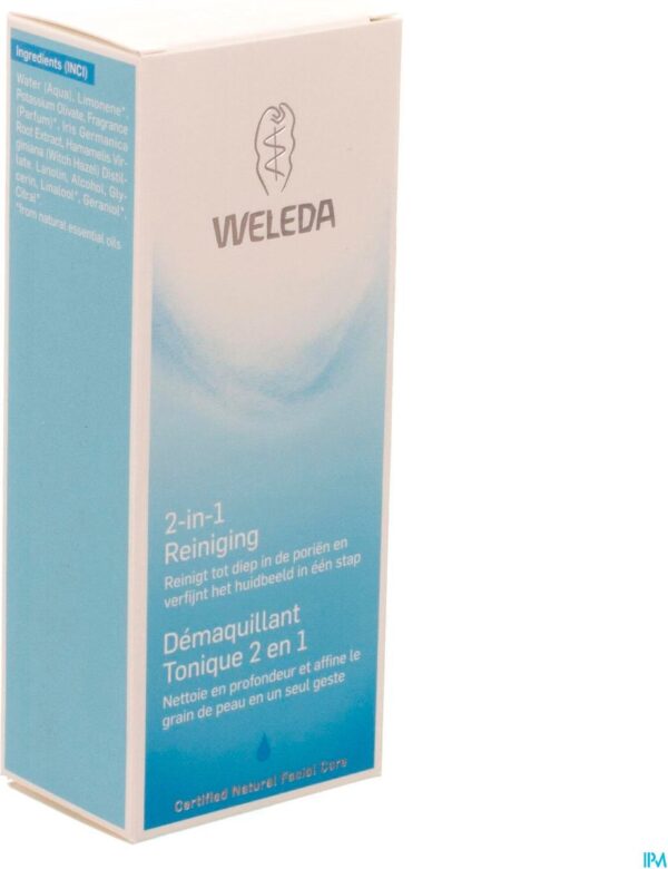 2-in-1 Reiniger & Toner is een melkachtige lotion die de normale en gemengde huid in één stap mild tot diep in de poriën reinigt en de huid zuivert. De lotion met o.a. natuurlijk verzeepte olijfolie en Hamamelis verwijdert make-up effectief en verfijnt het huidbeeld.