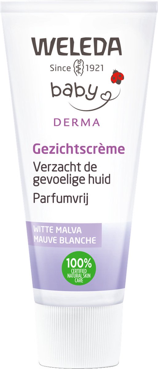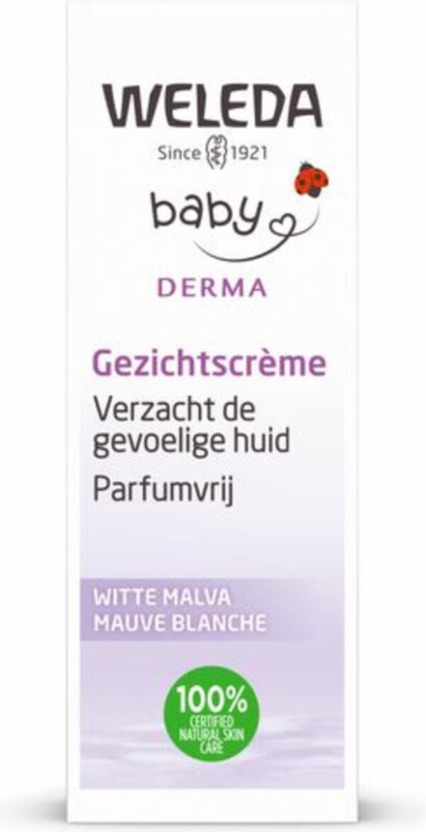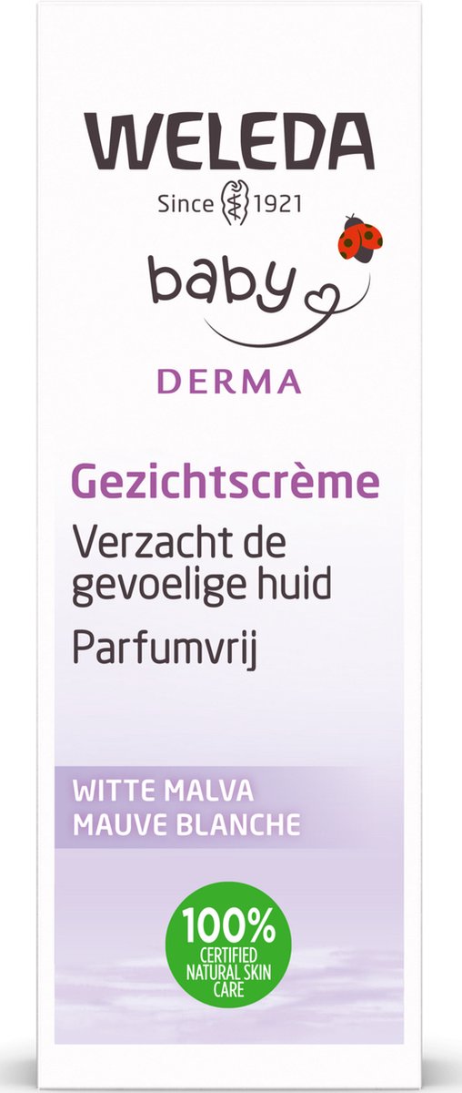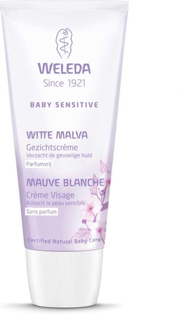 Baby Sensitive Witte Malva Gezichtscrème is een verzachtende crème die geschikt is voor de (zeer) gevoelige babyhuid. De gezichtscrème met zorgvuldig geselecteerde natuurlijke ingrediënten verzorgt intensief, hydrateert en beschermt tegen invloeden van buitenaf. Extracten van biologische Witte Malva en driekleurig viooltje kalmeren en verzachten de (zeer) gevoelige huid. Ook is Baby Sensitive Witte Malva Gezichtscrème parfumvrij.