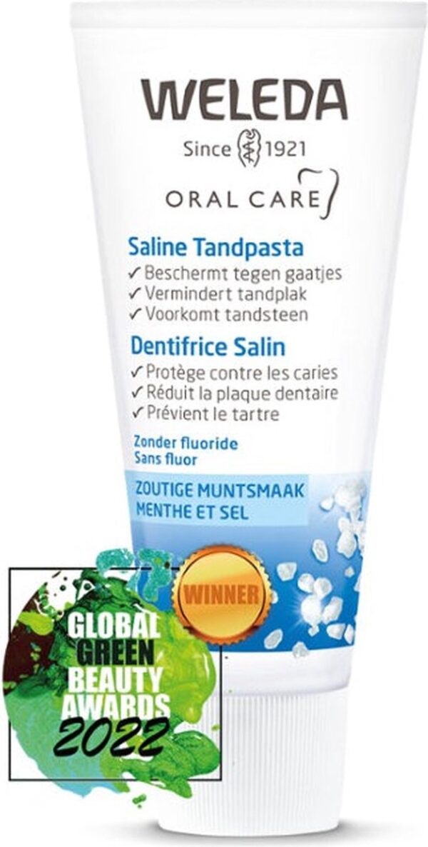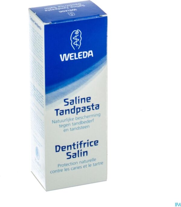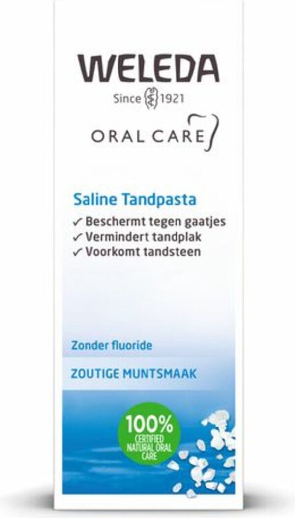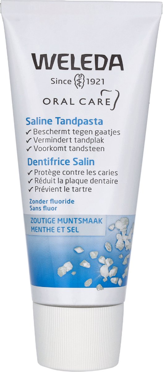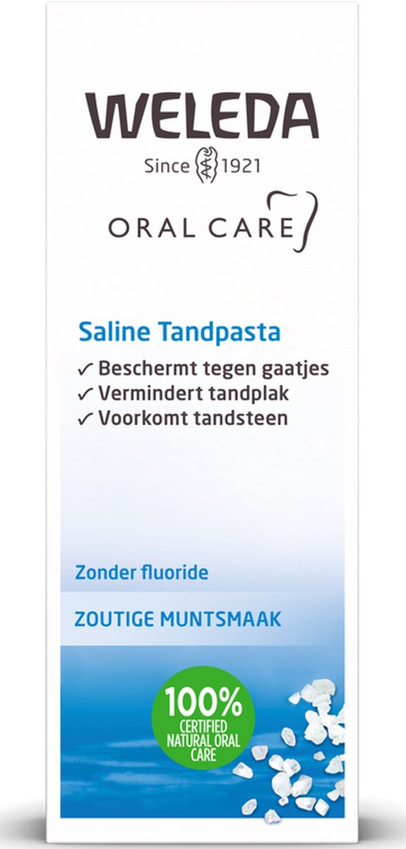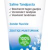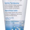 Saline Tandpasta gaat de vorming van tandplak tegen en vormt een natuurlijke bescherming tegen tandsteen. Zeezout heeft een drievoudige werking in de mond. Het stimuleert de zelfreinigende werking van het speeksel, neutraliseert het zuurgehalte in de mond en versterkt het tandvlees. Let op: Dit product bevat pepermuntolie. Om deze reden raden wij af om dit product te gebruiken in combinatie met homeopathische middelen.