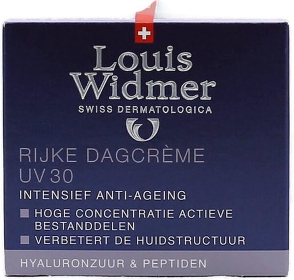 De Louis Widme Rijke Dagcrème is een verzorgende gezichtscrème voor de rijpere huid. De crème verzacht rimpels en maakt de huid stevig. Door de SPF wordt de huid beschermd tegen vroegtijdige huidveroudering door schadelijke UV-stralen. brand WIDMER