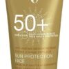 Het is belangrijk om voldoende zonnecrème te gebruiken om zeker te zijn van een optimale bescherming: 1 vingerlengte voor het gezicht. Breng de Sun Protection Face 50+ ongeveer 30 minuten voordat u in de zon gaat aan. Breng het zonneproduct opnieuw aan wanneer u in het water of het zand bent geweest. Uw fototype bepaalt hoe lang u in de zon kunt blijven. Het is niet omdat u een zonneproduct frequent aanbrengt dat u langer in de zon kunt blijven. U kunt dit zonneproduct ook op de gevoelige huid rond de ogen aanbrengen.