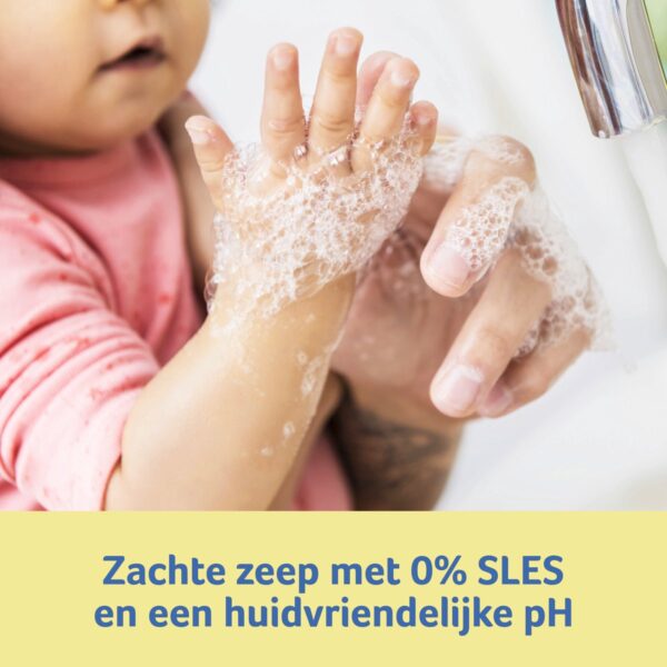 Gebruiksinstructies: Druk een kleine hoeveelheid zeep op een vochtige handdoek of direct in je handen. Masseer zachtjes over het babyhuidje en de handjes, spoel vervolgens af met water. De handige pomp maakt het makkelijk om de zeep te doseren, waardoor het gebruik snel en efficiënt is.