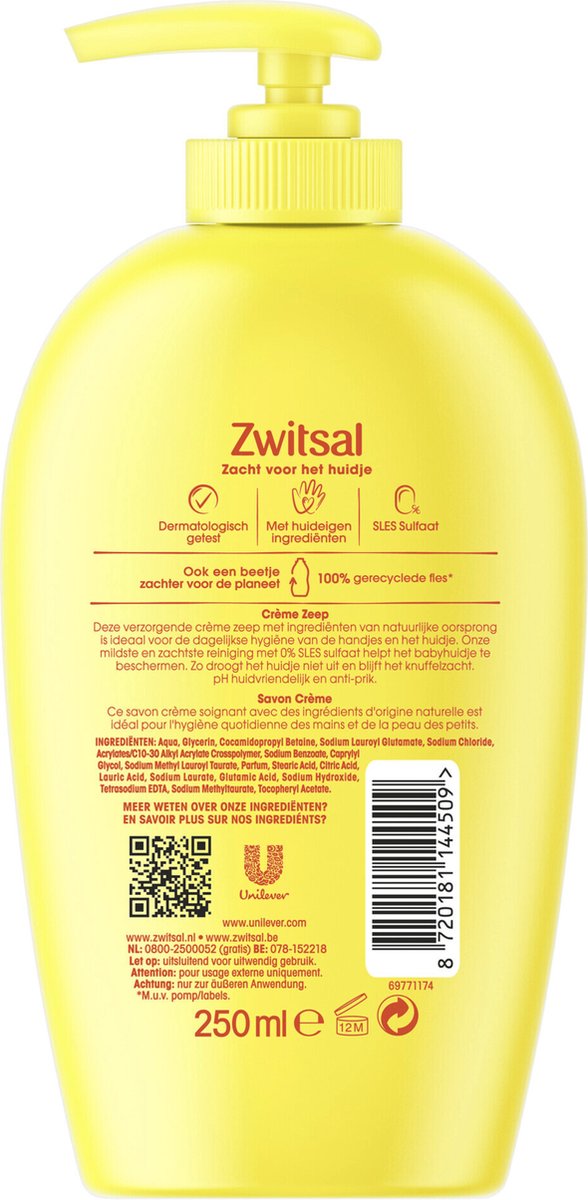 Over Zwitsal: Al bijna een eeuw zet Zwitsal zich in om de beste en veiligste huidverzorging te bieden aan baby’s. Onze producten zijn ontwikkeld om de zachte, kwetsbare babyhuid optimaal te verzorgen en beschermen. We streven naar duurzaamheid in onze verpakkingen en werken aan een circulaire economie waar mogelijk, zodat we de planeet achterlaten in betere staat voor toekomstige generaties.